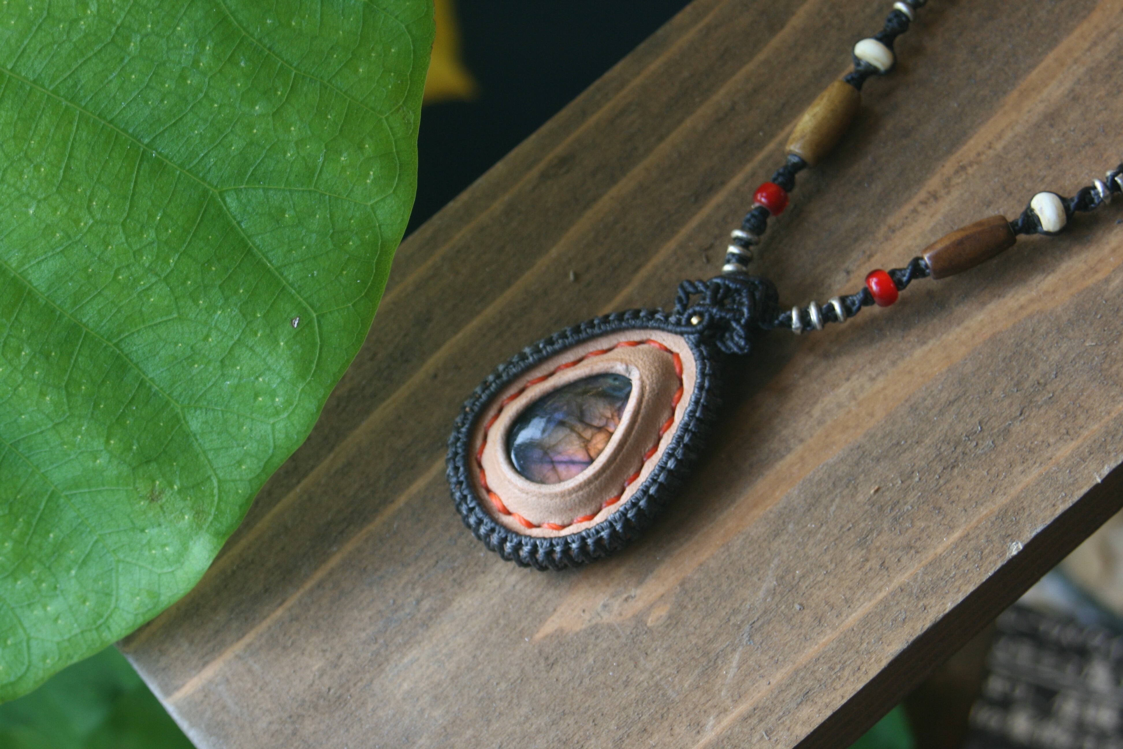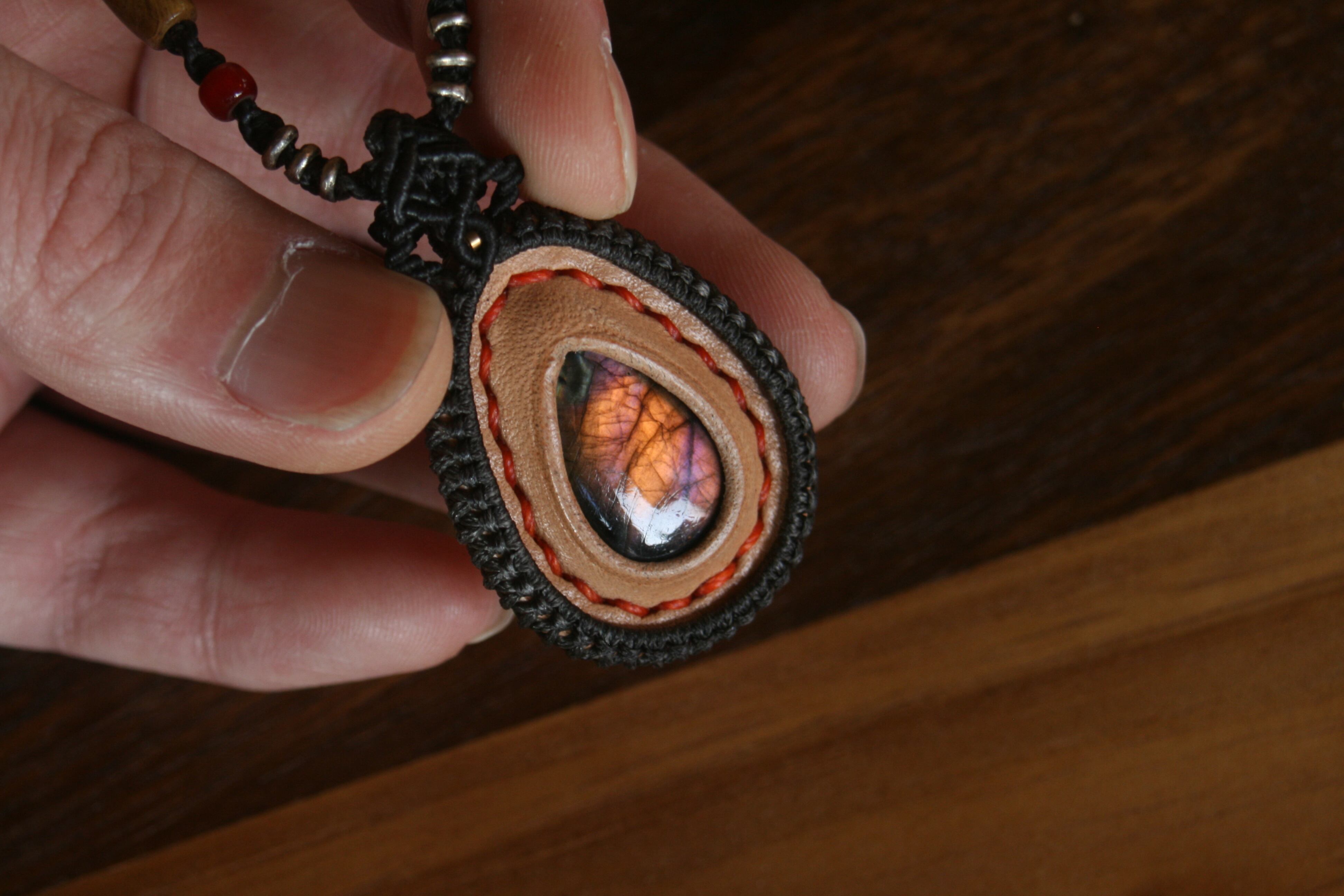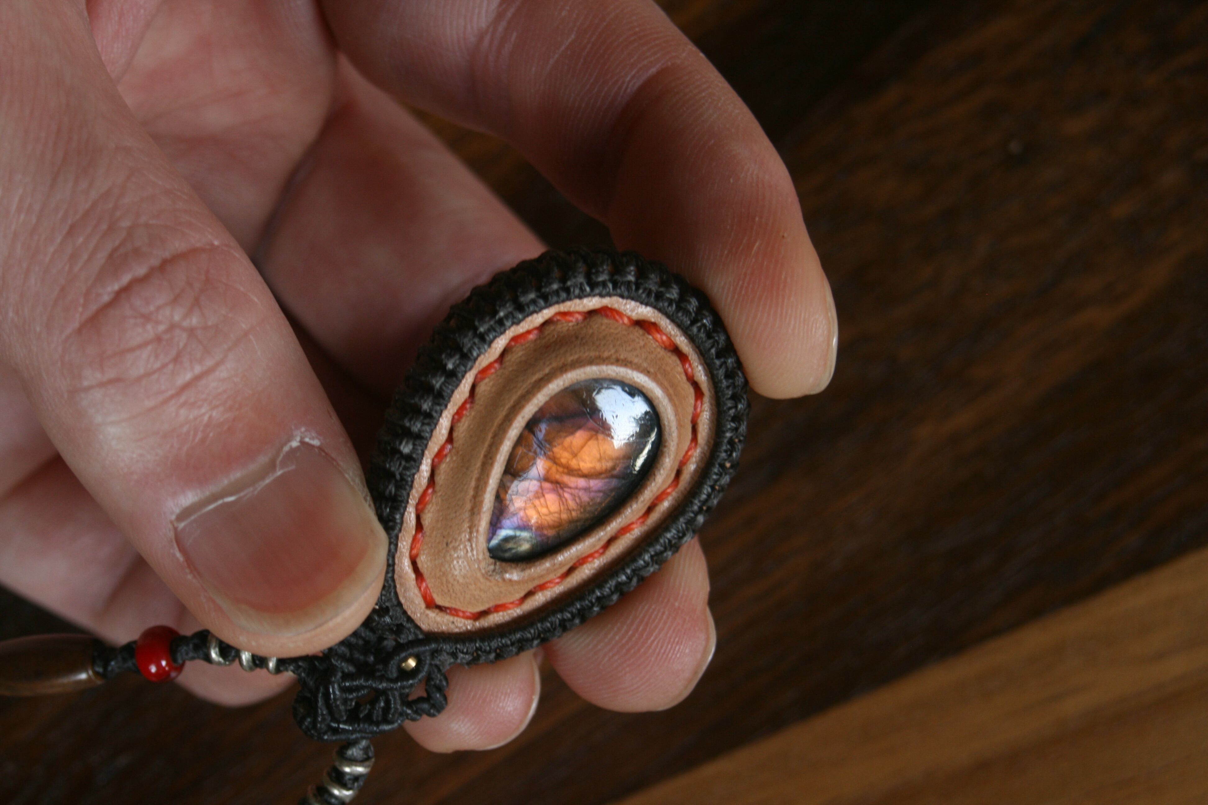 【スペクトロライト】天然石の革包MACRAMEネックレス